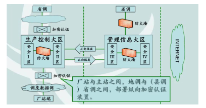 不论是《电力二次系统安全防护规定》,还是《电力监控系统安全防护规定》,均坚持了一个基本原则,“安全分区、网络专用、横向隔离、纵向认证”。这是电力监控系统安全的基本规则,如下图所示。