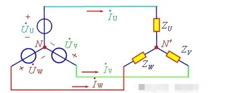 若接入了N线,三相不平衡电流就会与N线中的电流大小相等,方向相反,也就是说,不管三相是否平衡,如果把三相电流与N线电流叠加,它们的相量和是等于0的。
